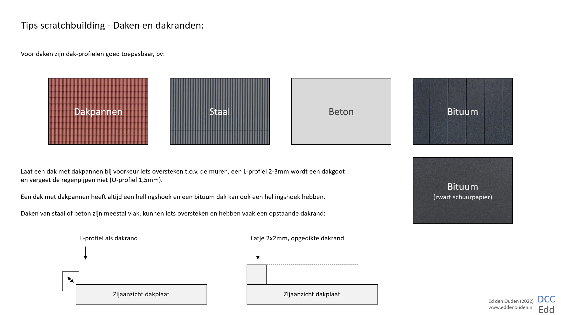 Daken en dakrandenVerschillende manieren om daken te maken: