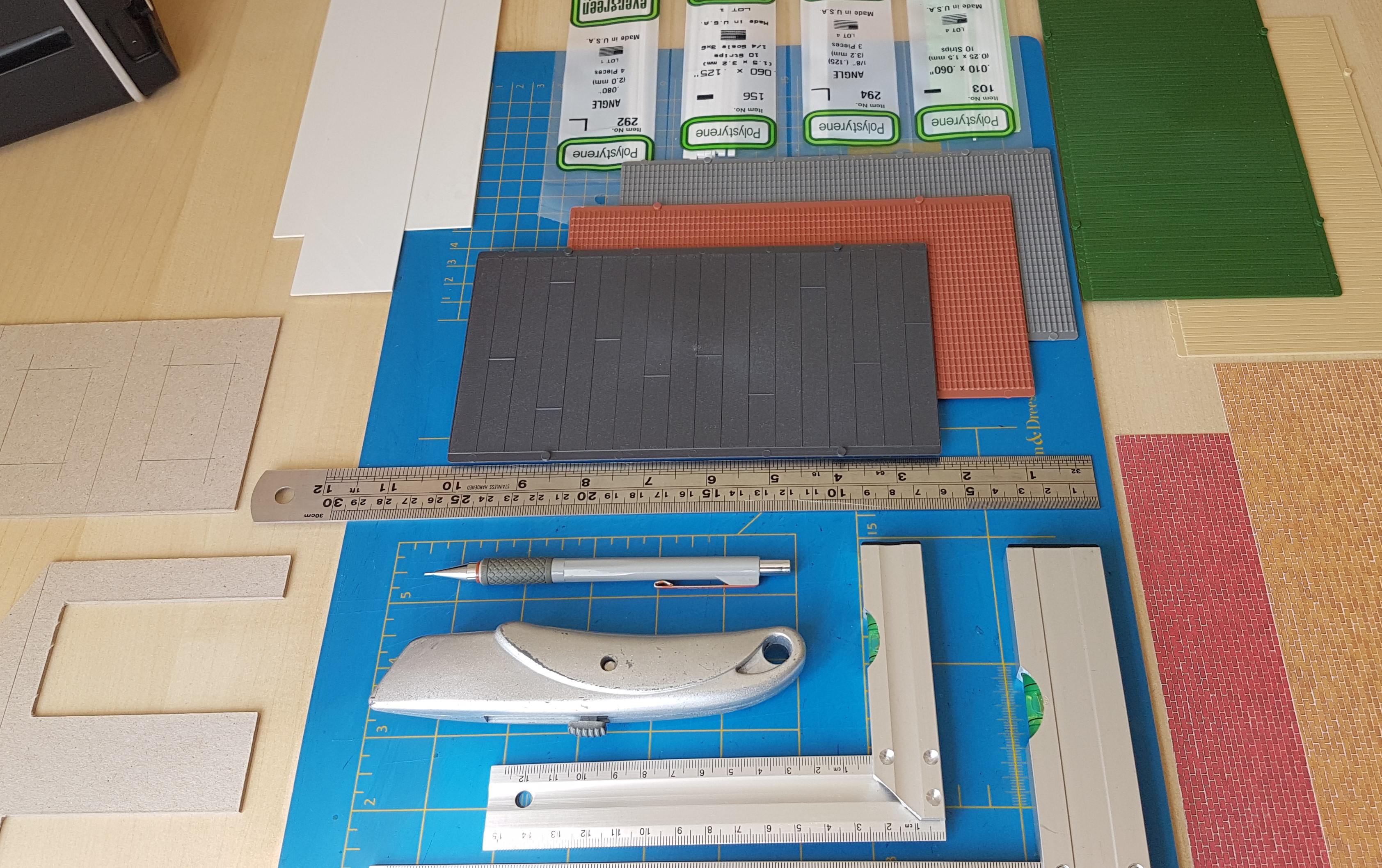 Voor kunststof profielen (bv voor dakranden, kozijnen, regenpijpen, deuren, etc) is Evergreen een prettig merk. Vele soorten en maten in basisprofielen (I, L, H, T, O) en plaatmateriaal, en het is verkrijgbaar bij vrijwel alle Nederlandse modelspoorwinkels.