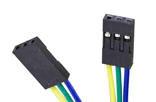 ConnectorenOm de wissels, seinen en de ontkoppelrails te verbinden met de schakelstroom en de decoderuitgangen, gebruik ik 3-polige Dupont connectoren. De bekabeling wordt hierbij met een bijpassende krimptang in de pinnen vastgezet: