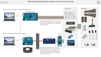 Zelfbouw DCC-decoder RXEen DCC-decoder RX kun je goedkoop en gemakkelijk zelf bouwen. Als je een Arduino Uno of Nano gebruikt dan heb je de beschikking over 16 uitgangen, en als je kiest voor een Arduino Mega, eventueel nog met extra port expanders PCF8574, dan heb je er nog veel meer (tot 64). De zelfbouw DCC-decoder RX bestaat uit 3 delen: