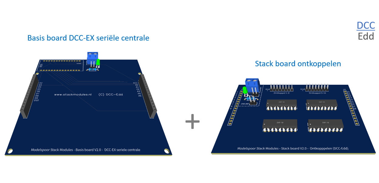 Zelfbouw DCC-EX en DCC-decodersOnderstaande units zijn zelfbouwprojecten op boardniveau. Dat betekent dat ze worden samengesteld uit meerdere boards die je voor het grootste deel klant en klaar kunt kopen. De zelfbouw bestaat dan uit het combineren, verbinden en programmeren van de units.